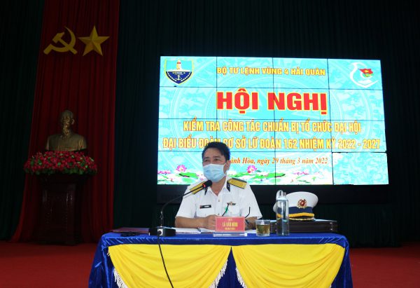 Sáng 29/3, Đại tá Lã Văn Hùng, Phó Chính uỷ Vùng 4 Hải quân và đoàn công tác Bộ Tư lệnh Vùng đã kiểm tra công tác chuẩn bị cho Đại hội đại biểu Đoàn cơ sở Lữ đoàn 162 lần thứ V, nhiệm kỳ 2022-2027. Đây là Đại hội làm trước để rút kinh nghiệm cho các tổ chức đoàn khu vực phía Nam của Quân chủng Hải quân.
