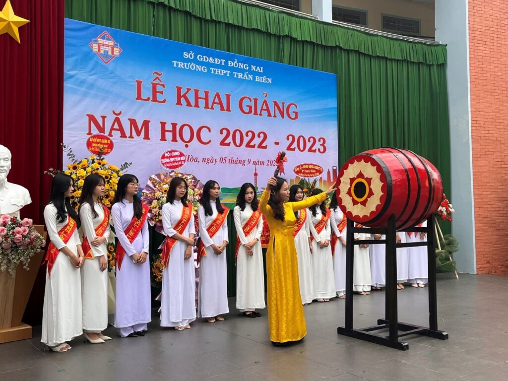 Cô Phạm Thị Thanh Hà đánh trống khai giảng năm học 2022-2023