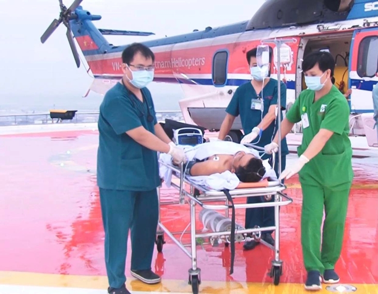 Sáng 2/10, trực thăng EC 225 số hiệu VN 8618 đã hạ cánh xuống sân đỗ tòa nhà Viện Chấn thương chỉnh hình, Bệnh viện Quân y 175, đưa bệnh nhân bị đa chấn thương nặng từ đảo Trường Sa, huyện đảo Trường Sa, Khánh Hòa về đất liền điều trị.