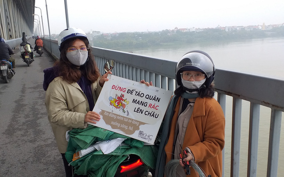 Họ treo những túi đựng rác lớn lên các cây cầu bắc qua sông Hồng như cầu Thăng Long, cầu Nhật Tân, cầu Long Biên… và ven các hồ nước trong thành phố như hồ Tây, hồ Gươm, hồ Trúc Bạch, hồ Đền Lừ…