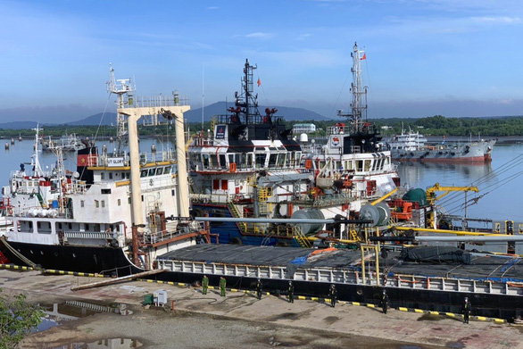 Lực lượng công an phong tỏa, khám xét khu vực bến cầu cảng Công ty TNHH Hà Lộc – Ảnh: B.A